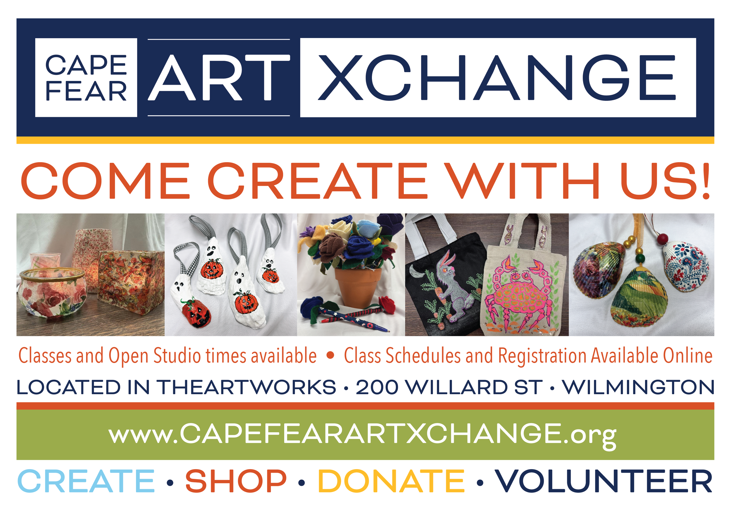 Cape Fear artXchange is a nonprofit creative community center dedicated to bringing people together through art, education, and sustainability. Our mission is based on these core values.