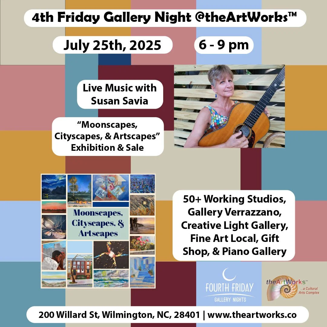 Join us for fourth Friday gallery night this month on July 25th, it’s a night you don’t want to miss! There will be live music with Susan Savia as well drinks for sale. Make sure to also check out our working studios, Gallery Verrazzano, Gift shop, and Fine Art Local Gallery while you are here! We will be open 6pm - 9pm.