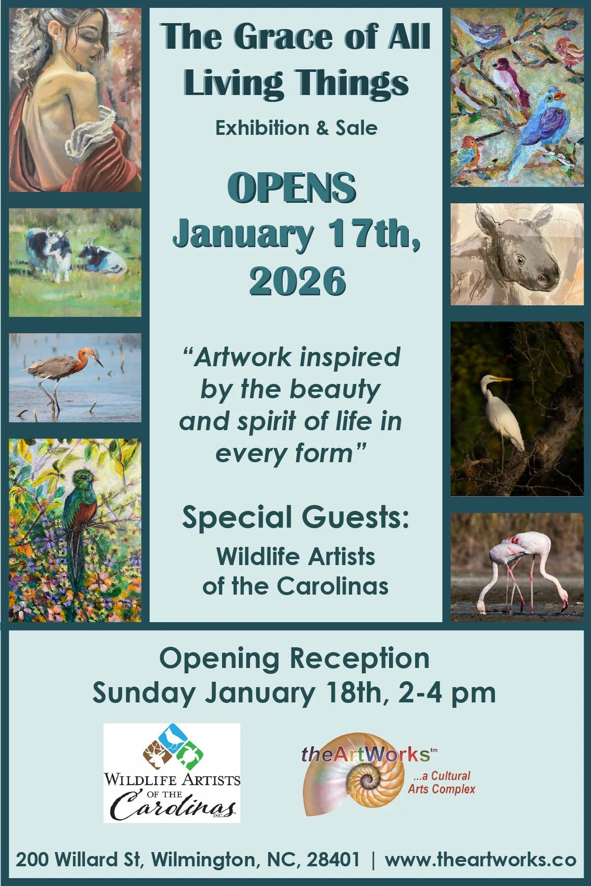For this exhibition, theArtWorks™ has invited the Wildlife Artists of the Carolinas as special guest artists, bringing together painters, photographers, sculptors, and mixed-media artists whose work reflects a deep respect for wildlife, habitat, and the interconnected grace of living beings.
